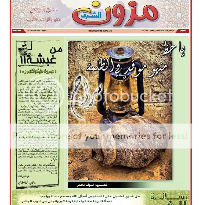 الصوره هذي تم اختيارها ووضعها بالجريده بمناسبه شهر رمضان الفضيل 2009